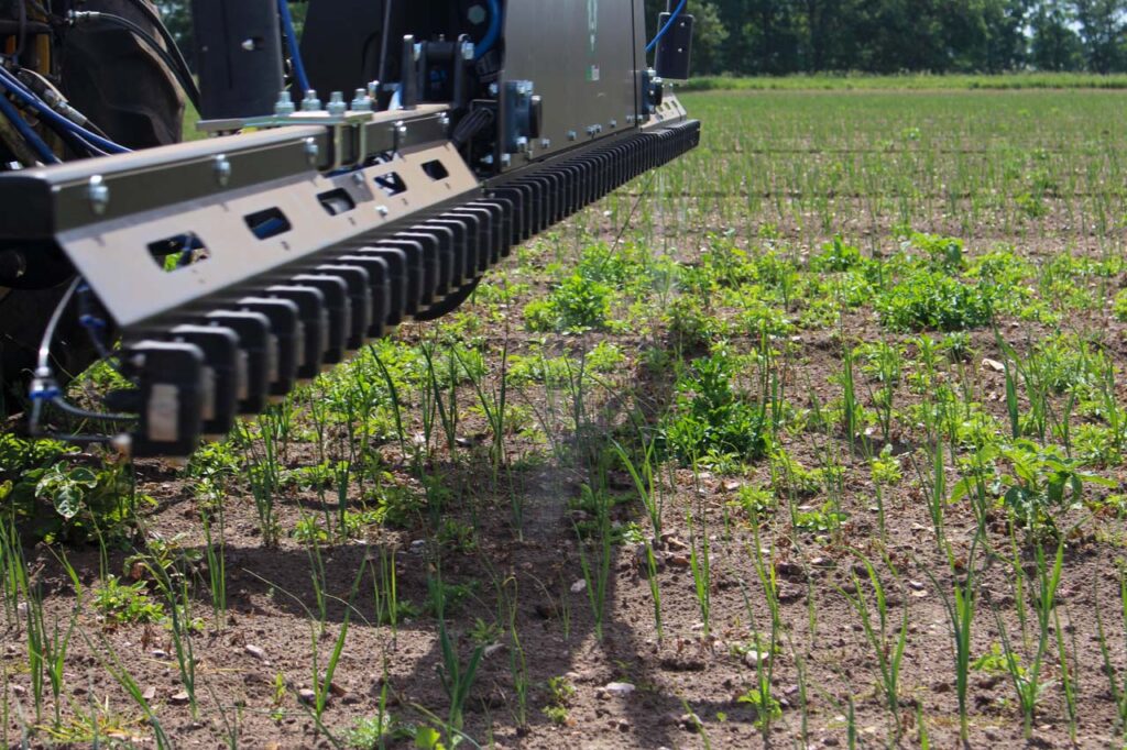 The software can be set to put the onion rows in an ‘exclusion zone’ – used at the early stage of crop growth – or to limit the target size to hit the weeds in a small area around it.