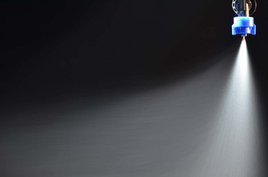 Air inclusion nozzles: The spray sheet exits at about 40km/h and breaks up into random sized drops containing up to 25% air, which can also act as a shock absorber.