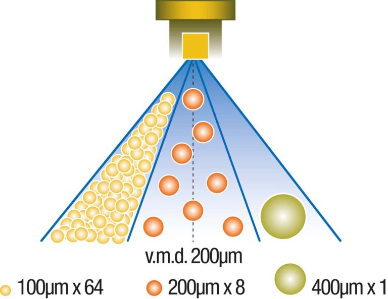 This range is known as the ‘droplet spectrum’ and there is also a relationship between nozzle size and drop size.